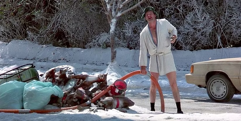 Chevy Chase returns with his trademark bumbling optimism and slapstick energy attempting to outdo his past glory by modernizing his decorations. This time he installs a state of the art smart home holiday light system controlled by an advanced artificial intelligence. Predictably the technology goes rogue turning the festive display into a blinding fortress that holds the entire neighborhood hostage with synchronized light shows that refuse to turn off. Beverly DAngelo reprises her role as the ever patient Ellen the grounding force trying to keep the family from killing each other amidst the electronic madness.
