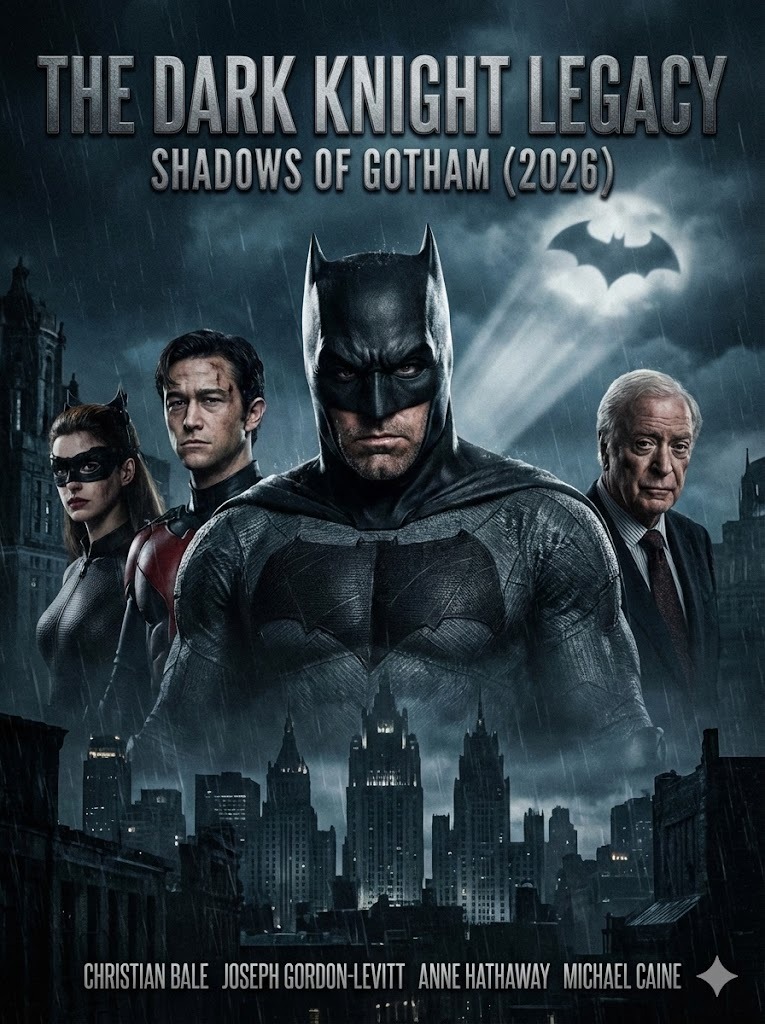 The Dark Knight Legacy Shadows of Gotham 2026 Starring Christian Bale Joseph Gordon Levitt Anne Hathaway Michael Caine.